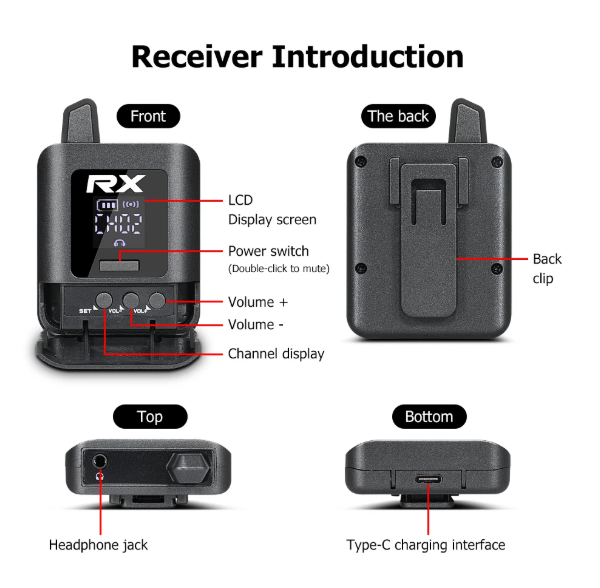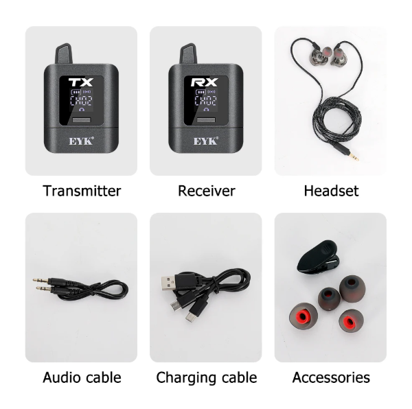 Este sistema inalámbrico de monitor intrauditivo portátil estéreo está diseñado para la grabación en estudio y de pequeños conciertos en exteriores. La batería de litio incorporada de cuerpo pequeño se puede cargar a través de la interfaz Tipo C y se puede utilizar durante aproximadamente 10 horas cuando está completamente cargada. Tiene señales estables y buena distancia de transmisión en señal digital de 2,4G.11 canales seleccionables para un funcionamiento sin interferencias.