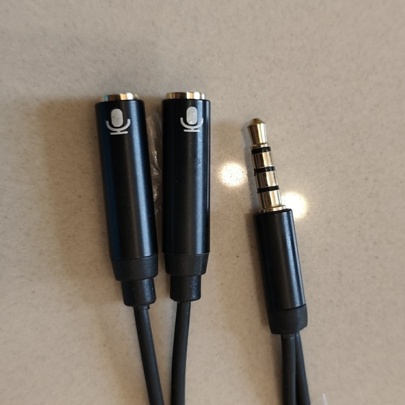 2 conectores hembra 3.5 mm TRRS para micrófono a 1 conector macho 3.5 TRRS