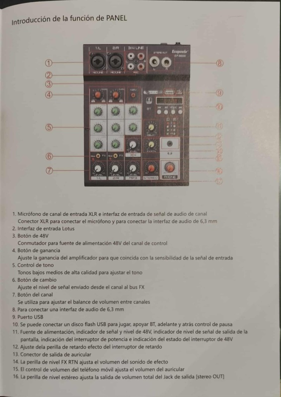 7. Botón del canal Se utiliza para ajustar el balance de volumen entre canales