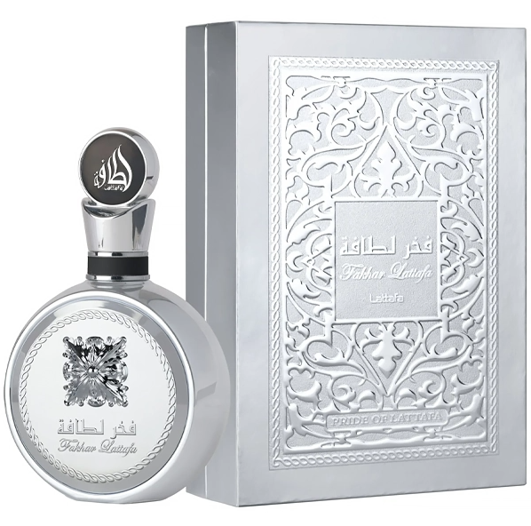 Fakhar Platin de Lattafa Perfumes es una fragancia de la familia olfativa Aromática Fougère para Hombres y Mujeres. Esta fragrancia es nueva. Fakhar Platin se lanzó en 2025. Las Notas de Salida son bergamota, cardamomo y pimienta rosa; las Notas de Corazón son guayaba, lavanda y jengibre; las Notas de Fondo son sándalo, palo santo y incienso.