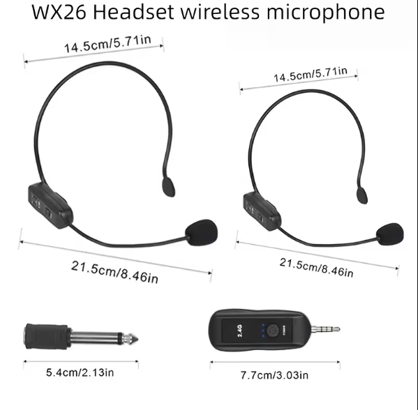 Sistema de Micrófono inalámbrico Recargable 2.4G. Ideal para Oradores, Amplificadores de Voz, Sistemas de Sonido, Profesores, Guías Turísticos y Entrenadores de Fitness. etc.